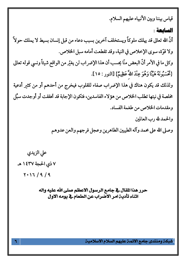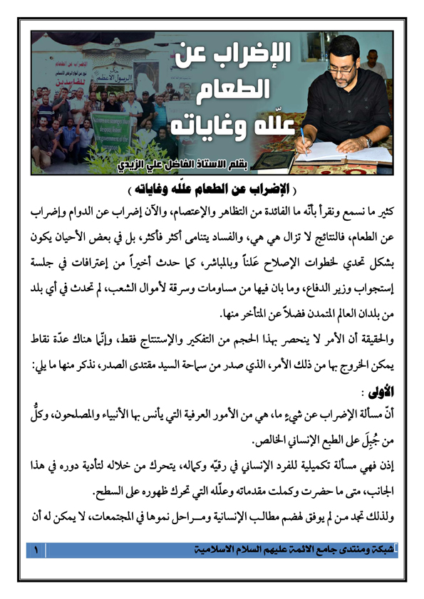 رد: الإضراب عن الطعام علّله وغاياته / بقلم الاستاذ علي الزيدي