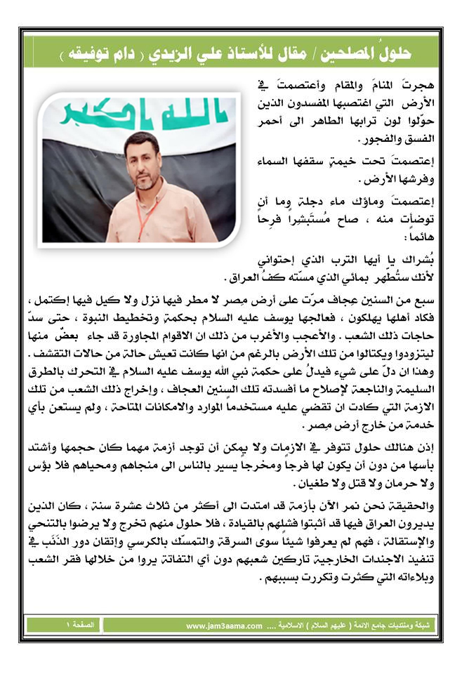 حلولُ المصلحين / بقلم الاستاذ الفاضل علي الزيدي