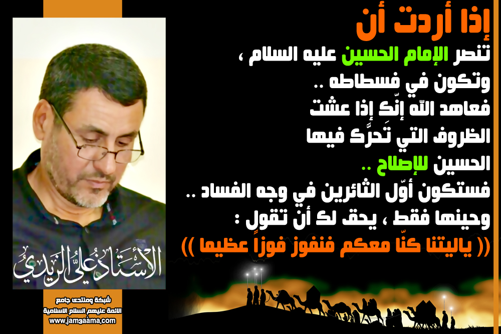 إذا أردت أن تنصر الإمام الحسين عليه السلام ، وتكون في فسطاطه ..الاستاذ الفاضل علي الزيدي