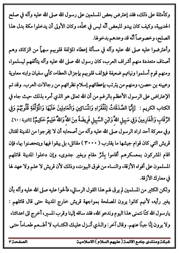 أحداث سريعة، ومتغيرات تتطلبها المرحلة، ما تكاد أن تضع أصبعك عليها لتشخص أسبابها وعللها، حتى يظهر متغير آخر، ما كان ليدر بخلدك، وعندها قد تتقاطع عند البعض المواقف وتتفق في البعض الآخر منها، وكلٌ يسعى الى تحقيق مراده في هذا البلد الذي أصبح كالقنفذ من أثر السهام والطعنات. فهكذا هي الأحداث تمر علينا سريعة كأنها البرق الخاطف. والغريب إن تلك الأحداث والمتغيرات تحتاج الى تعامل خاص، يحدد الفرد من خلاله موقفه الذي يتبناه، والذي يرتجي منه تحقيق أهدافه وغاياته، ولا يمكن غض الطرف عنها والابتعاد منها، إلّا إذا كان الفرد غافلاً نائماً لا يهمه من أمر بلده شيء يذكر، وفي خضم ذلك يظهر البعض ليدلي بآرائه، ثم يعترض أو يصيبه هاجس من الرفض لقسم من التحركات التي يقوم بها، من كان يعتقد به بأنه طريق الهداية والنجاة، يعترض ويشكك، وكأن الأمر يدور في حلقة ضيقة من حلقات فكره، الذي لا يعدو حجم تجربته في الحياة، فهو كمن يقترب من أسد مفترس، ولكنه لم يره، لوجود ساتر من القماش، وعندما يقول له أحدهم ابتعد عن هذا الستار ولا تقترب منه، لا يسمع الكلام ولا يمتثل له، وقد يستهزء به، وما ذلك إلّا لأنه لا يرى ملامح الخطر شاخصة أمامه. فهكذا هي الأمور التي تجري الآن، كلها مغلفة بأستار وأقنعة، تأتيك لتأخذ منك ما تريد، وهي ماثلة أمامك تتميع، تغريك وتغويك فتظهر لك بعكس واقعها، فتحيطك بالأخطار من كلّ جانب، وأنت لا تشعر بها، بل لا تفقه من أمرها وسيرها شيء. والشخص المُتَعقّل في مثل هذه الظروف عليه أن يترك الأمر لأهله الذين خبروا الحياة وعرفوا ما هو المصلح من المفسد فيها، وأنطلقوا من موقع المسؤولية، لمعالجة كل ما هو طارئ، ومواجهة المستجدات وتشخيص محركاتها، من أجل الوصول بالقاعدة الى جرف النجاة، ومن ثم بناء مجد وعز وحضارة، وأود الآن أن أذكر بعض النقاط كوصايا لمن أراد أن يتعامل مع هذه المواقف والمتغيرات بشكل سليم، ليخرج منها بموقف يطمئن له قلبه ولا تشك فيه نفسه. أولاً: الكثير منّا قد قرأ التأريخ وتمعّن في أحداثه، وقد مرّت علينا إعتراضات المسلمين على الكثير من أفعال وأقوال الرسول صلى الله عليه وآله، وما ذلك إلّا لأنّهم قد عاشوا مرحلة ذلك التفكير البسيط والساذج في التعامل مع تحركات الرسول وتصرفاته، والذي كثيراً ما كان يُلَقّح بكلمات الفتنة من قبل المنافقين، لتزداد بذلك الحيرة ويزداد الشك في أصل القيادة، لتبرز الى الوجود الإعتراضات من خلال الكلام أو بعض التصرفات الغير لائقة، وبالتالي سوف تكون النتائج المترتبة على مثل هكذا سلوك غير مرضية على الإطلاق. وكأمثلة على ذلك، فقد إعترض بعض المسلمين على رسول الله صلى الله عليه وآله في صلح الحديبية، وكيف كان يبدو للبعض أنّه ليس في محلّه، وكان الأولى أن يدخلوا مكة بدل هذا الصلح، وخصوصاً أنّه قد وعدهم بدخولها. وأعترضوا عليه صلى الله عليه وآله في مسألة إعطاء المؤلفة قلوبهم سهماً من الزكاة، وهم أصناف متعددة منهم أشراف العرب، كان رسول الله صلى الله عليه وآله يتألفهم ليسلموا، ومنهم قوم أسلموا ونياتهم ضعيفة فيؤلف قلوبهم بإجزال العطاء، كأبي سفيان وابنه معاوية وعيينه بن حصن، ومنهم من يترتب بإعطائهم إسلام نظرائهم من رجالات العرب. وقد تم الإعتراض على الرسول الأعظم بالرغم من أن الله تعالى هو الذي أمره بذلك حيث جاء في الكتاب الكريم : {إِنَّمَا الصَّدَقَاتُ لِلْفُقَرَاءِ وَالْمَسَاكِينِ وَالْعَامِلِينَ عَلَيْهَا وَالْمُؤَلَّفَةِ قُلُوبُهُمْ وَفِي الرِّقَابِ وَالْغَارِمِينَ وَفِي سَبِيلِ اللَّهِ وَابْنِ السَّبِيلِ فَرِيضَةً مِنَ اللَّهِ وَاللَّهُ عَلِيمٌ حَكِيمٌ} [التوبة : 60]. وفي معركة أحد اراد الرسول صلى الله عليه وآله من أصحابه أن لا يخرجوا من المدينة لقتال قريش التي كان قوام جيشها ما يقارب ( 3000 ) مقاتل، بل يبقوا فيها ويتحصنوا بها، فإن اقام المشركون بمعسكرهم أقاموا بِشَرِّ مقام وبغير جدوى، وإن دخلوا المدينة قاتلهم المسلمون على أفواه الأزقة، والنساء من فوق البيوت، وذلك 
