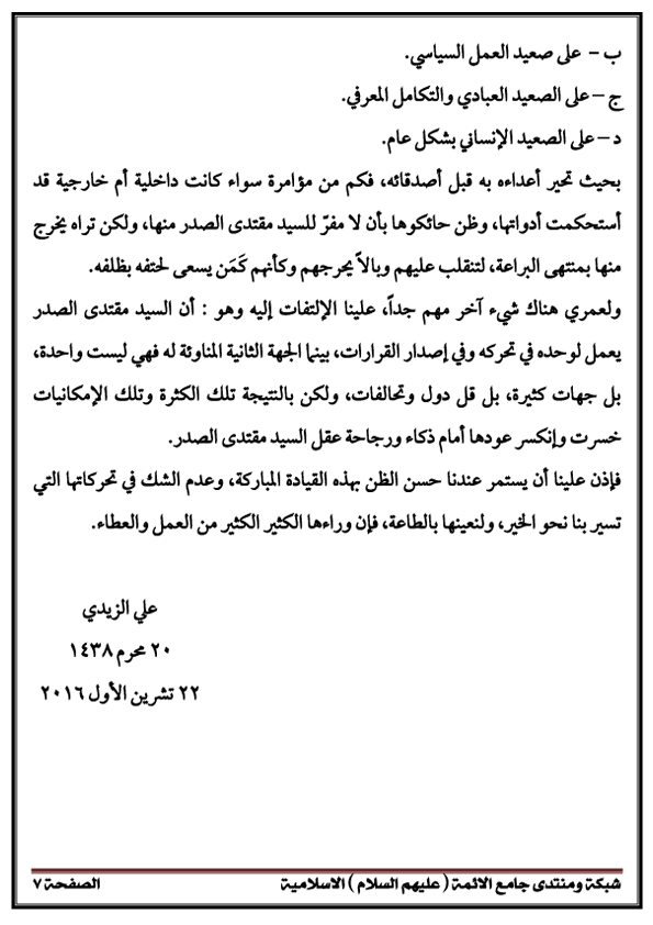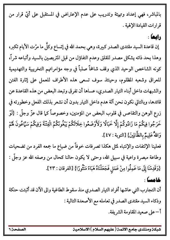 رد: السنن التأريخية حاضرة في حركة السيد مقتدى الصدر / بقلم الاستاذ الفاضل علي الزيدي