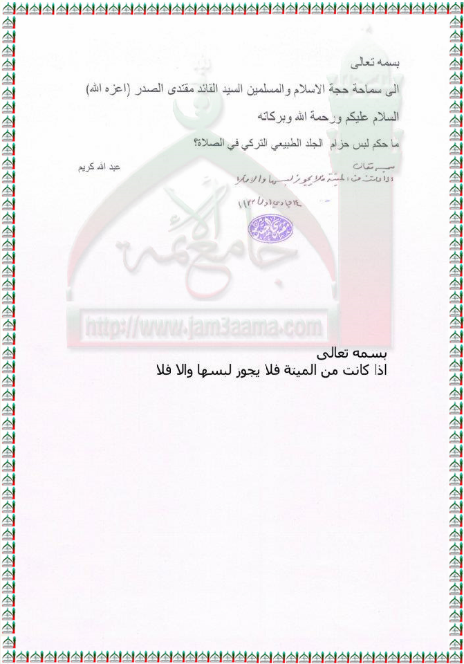 حكم لبس حزام الجلد الطبيعي التركي في الصلاة استفتاء السيد القائد مقتدى الصدر اعزه الله 9- 4 - 2012
