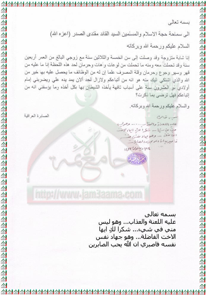 ضرب الزوجة والتقصير في حقها استفتاء السيد القائد مقتدى الصدر اعزه الله 9- 4 - 2012