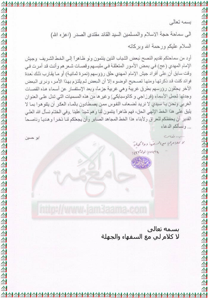 عدم التزام البعض من المحسوبين على التيار بالشرع في الملبس وقصة الشعر استفتاء السيد القائد مقتدى الصدر اعزه الله 9- 4 - 2012