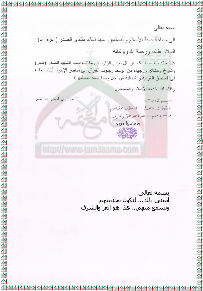 التواصل مع اخواننا ابناء السنة والجماعة استفتاء السيد القائد مقتدى الصدر اعزه الله 10 - 4 - 2012