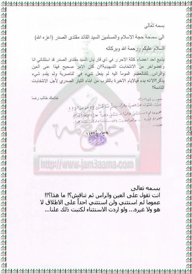 لا استثناء في الانتخابات التمهيدية استفتاء السيد القائد مقتدى الصدر اعزه الله 10 - 4 - 2012