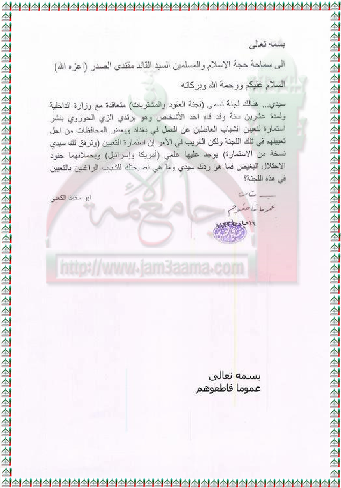 لجنة العقود والمشتريات في وزارة الداخلية استفتاء السيد القائد مقتدى الصدر اعزه الله 10 - 4 - 2012