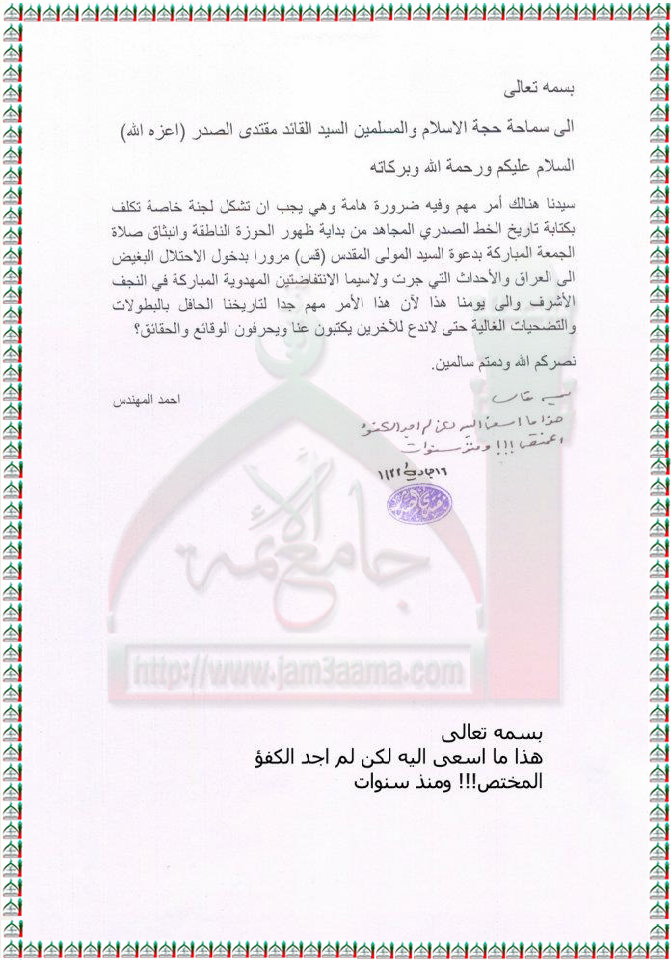 تشكيل لجنة خاصة لكتابة تاريخ الخط الصدري المجاهد استفتاء السيد القائد مقتدى الصدر اعزه الله 10 - 4 - 2012