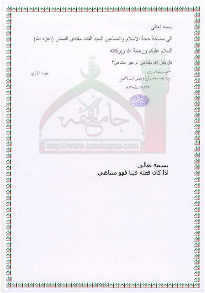 فعل الله فينا متناهي استفتاء السيد القائد مقتدى الصدر اعزه الله 11- 4 - 2012