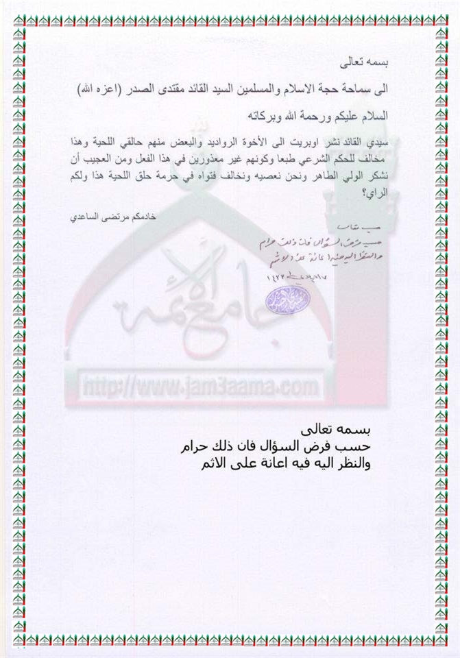 النظر الى اوبريت بعض المشتركين به حالقين لللحى استفتاء السيد القائد مقتدى الصدر اعزه الله 11- 4 - 2012