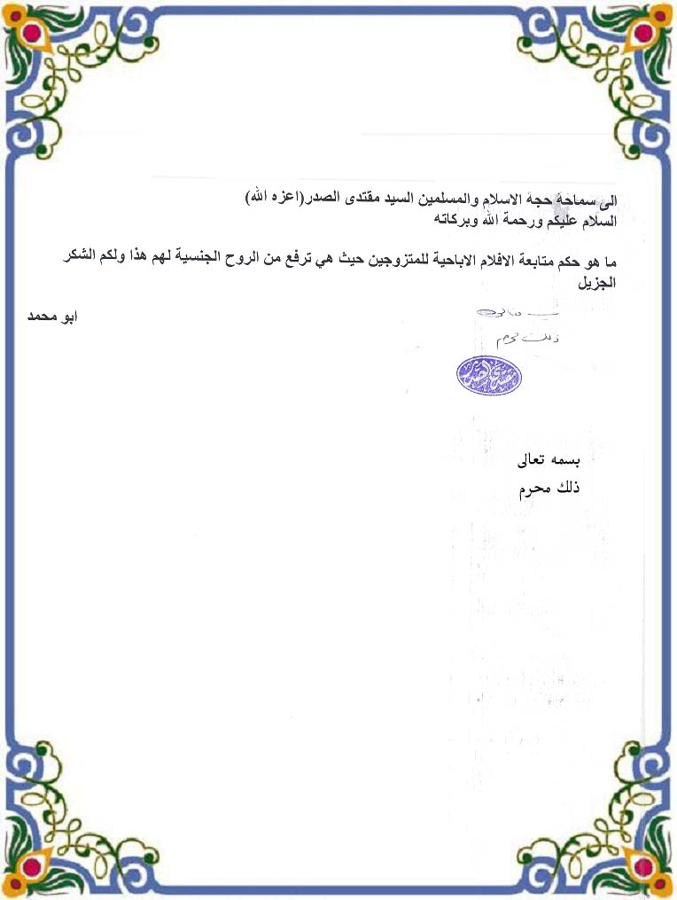 حرمة الافلام اللااخلاقية(استفتاء للسيد القائد بتاريخ 2-2-2011)