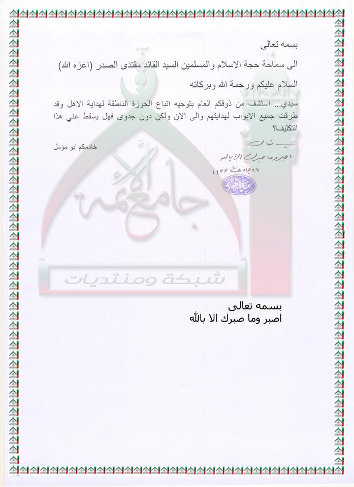 الامر بالمعروف والنهي عن المنكر للاهل استفتاء السيد القائد مقتدى الصدر اعزه الله 20 - 4 - 2012