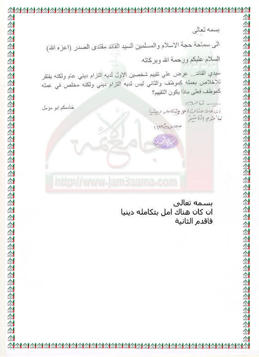 تقييم عمل الموظف الحكومي استفتاء السيد القائد مقتدى الصدر اعزه الله 26 - 4 - 2012