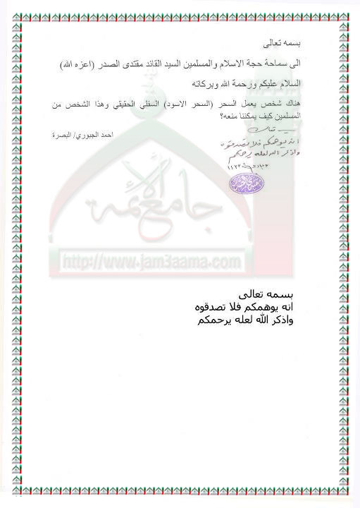 كيفية التعامل مع السحرة استفتاء السيد القائد مقتدى الصدر اعزه الله 26 - 4 - 2012