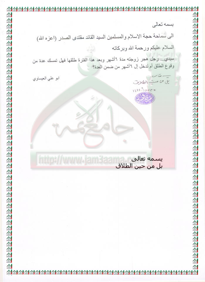 عدة الزوجة التي هجرها زوجها استفتاء السيد القائد مقتدى الصدر اعزه الله 27-4-2012