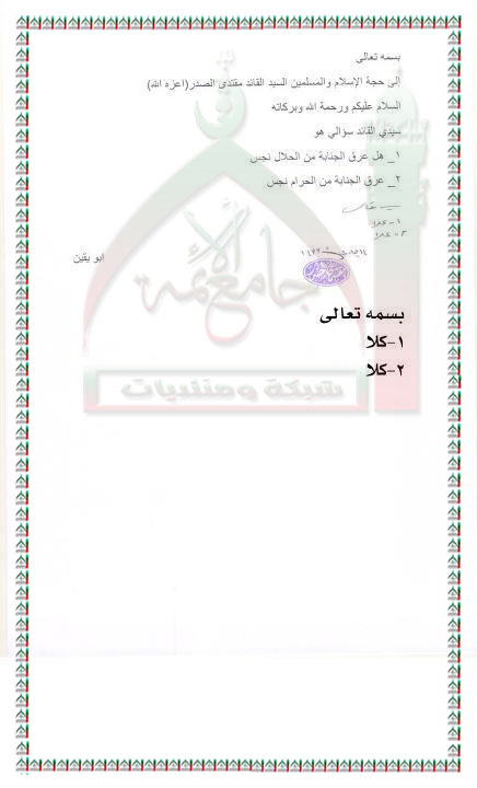 طهارة عرق الجنابة من الحلال والحرام استفتاء السيد القائد مقتدى الصدر اعزه الله 8 - 5 - 2012
