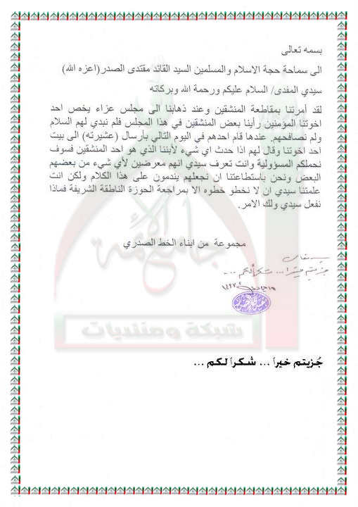 مقاطعة المنشقين اجتماعيا استفتاء السيد القائد مقتدى الصدر اعزه الله 10 - 5 - 2012