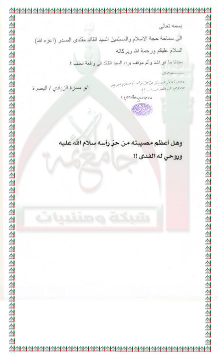 اشد موقف في واقعة الطف الاليمة استفتاء السيد القائد مقتدى الصدر نصره الله 11 - 5 - 2012