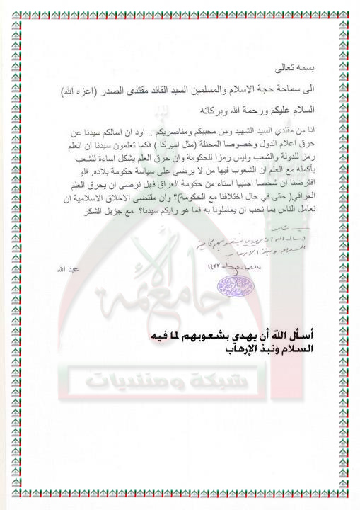 حرق اعلام الدول المحتلة استفتاء السيد القائد مقتدى الصدر نصره الله 11 - 5 - 2012