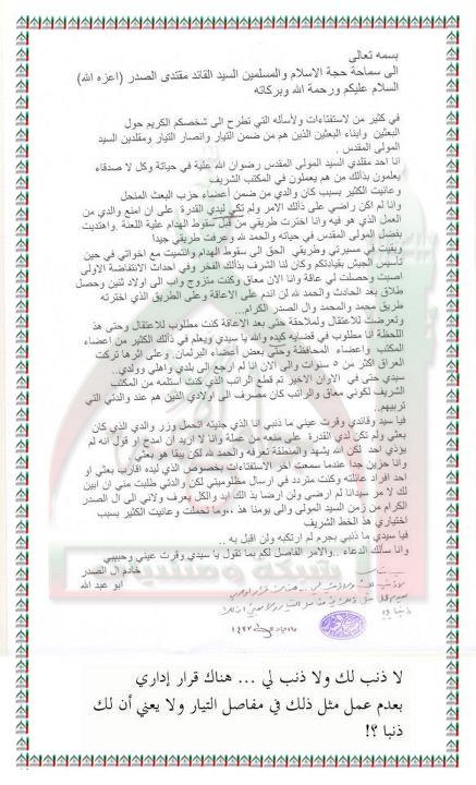 عمل ابن البعثي في مفاصل الخط الصدري الشريف استفتاء السيد القائد مقتدى الصدر نصره الله 11 - 5 - 2012