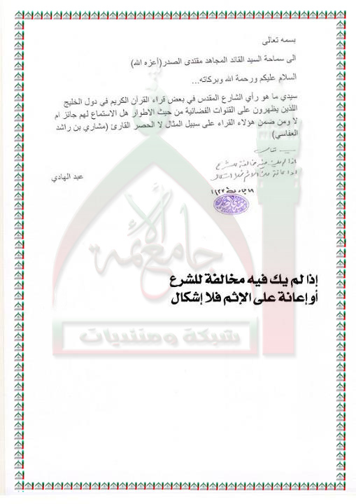 الاستماع الى بعض قرّاء القران من دول الخليج استفتاء السيد القائد مقتدى الصدر نصره الله 12 - 5 - 2012