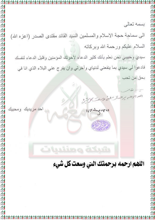 طلب الدعاء لاحد المؤمنين استفتاء السيد القائد مقتدى الصدر اعزه الله 14 - 5 - 2012