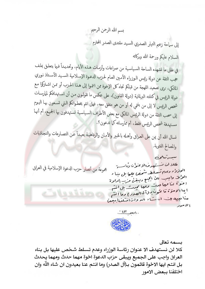 استهداف عنوان رئاسة الوزراء لا شخص رئيس الوزراء استفتاء السيد القائد مقتدى الصدر اعزه الله 1- 6 - 2012