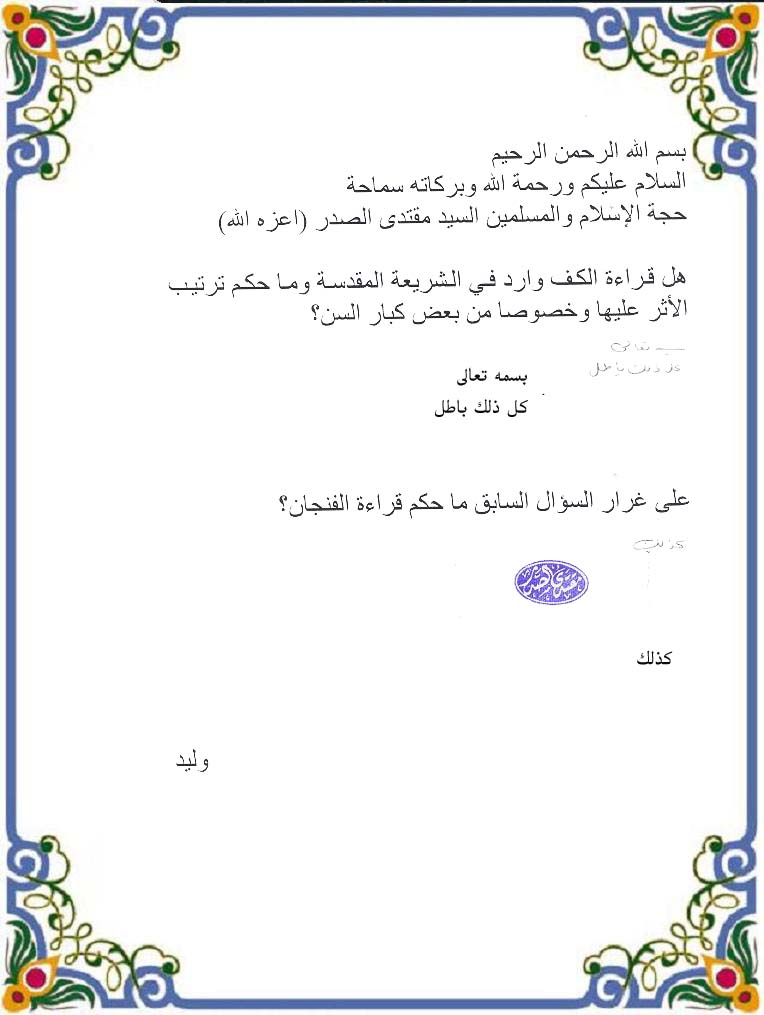 بطلان قراءة الكف والفنجان(استفتاء للسيد القائد بتاريخ 11-2-2011)