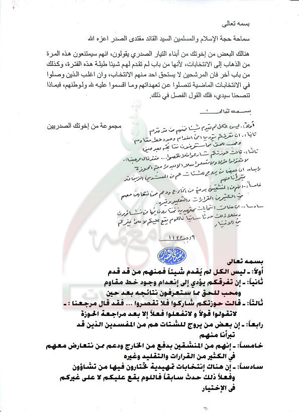 بيانات واستفتاءات السيد القائد مقتدى الصدر نصره الله