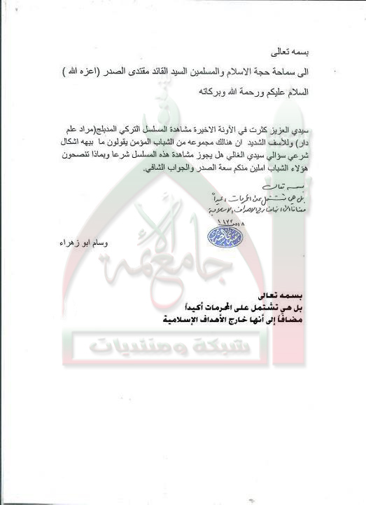 المسلسل التركي مراد علمدار استفتاء السيد القائد مقتدى الصدر اعزه الله 1 - 6 - 2012