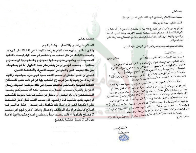 بيانات واستفتاءات السيد القائد مقتدى الصدر نصره الله
