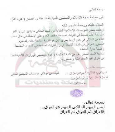 بيانات واستفتاءات السيد القائد مقتدى الصدر نصره الله