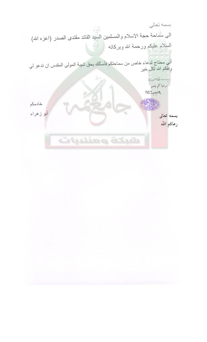 طلب دعاء خاص استفتاء السيد القائد مقتدى الصدر اعزه الله 6-6-2012