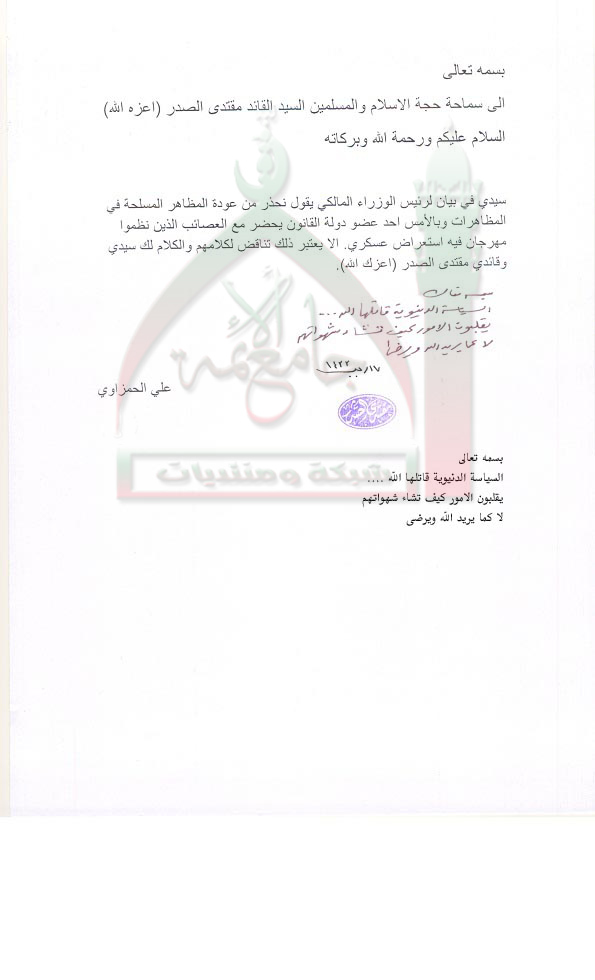 بيانات واستفتاءات السيد القائد مقتدى الصدر نصره الله