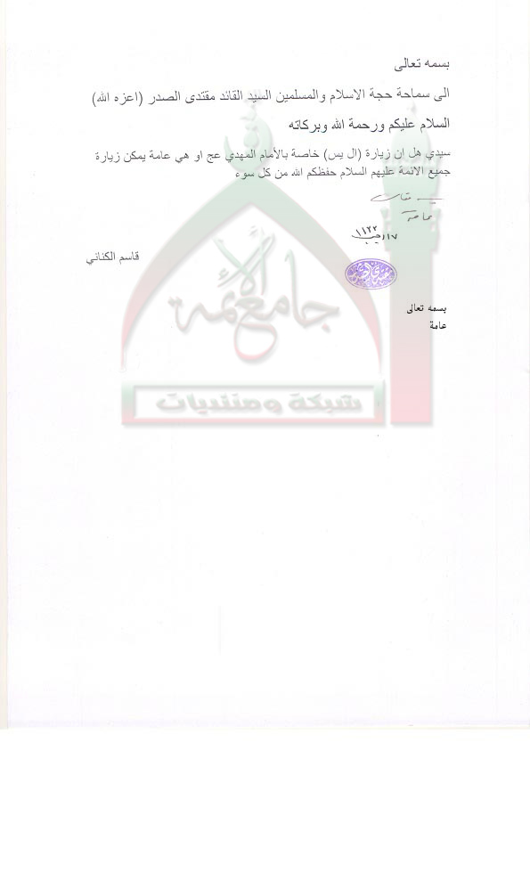 زيارة (ال يس) استفتاء السيد القائد مقتدى الصدر اعزه الله 9 - 6 - 2012