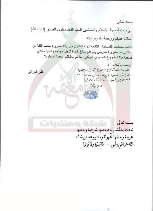مشروعنا لسحب الثقة عن المالكي عراقي الهي ...فاثبتوا ولا تزلوا استفتاء السيد القائد مقتدى الصدر اعزه الله 15 - 6 - 2012