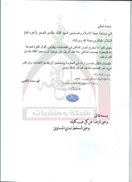 ادّعاء اعوان المالكي عدم استحقاق المالكي لسحب الثقة عنه استفتاء السيد القائد مقتدى الصدر اعزه الله 15 - 6 - 2012