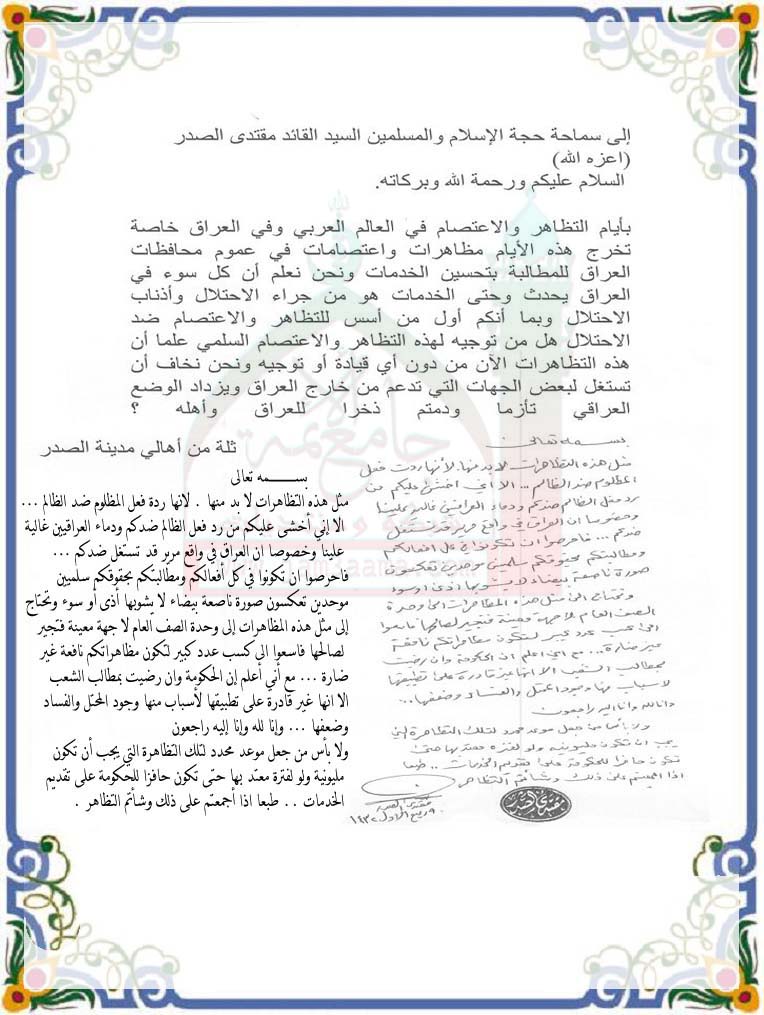 التظاهرات لا بد منها(استفتاء للسيد القائد بتاريخ 13-2-2011)