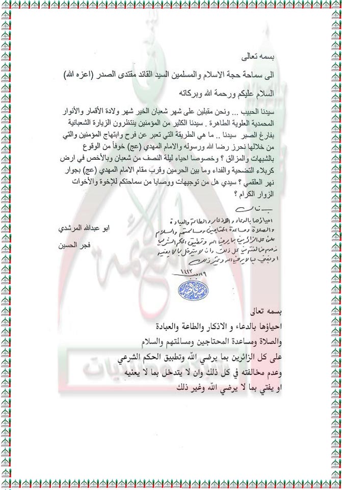 توجيهات ووصايا لزوار الشعبانية استفتاء السيد القائد مقتدى الصدر(اعزه الله) 21 -6 -2012