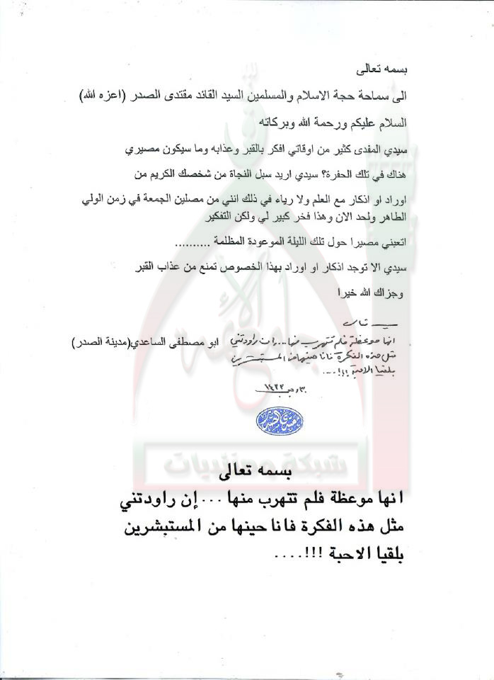 التفكير في القبر وعذابه استفتاء السيد القائد مقتدى الصدر 22-6-2012
