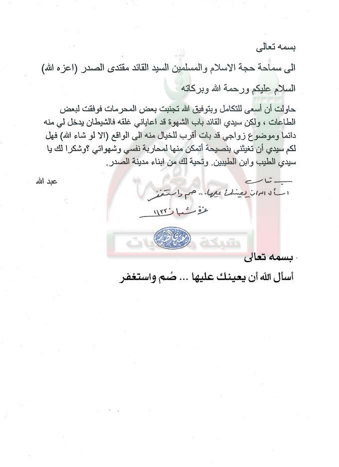 طلب نصيحة لمحاربة النفس استفتاء السيد القائد مقتدى الصدر اعزه الله 23 - 6 - 2012
