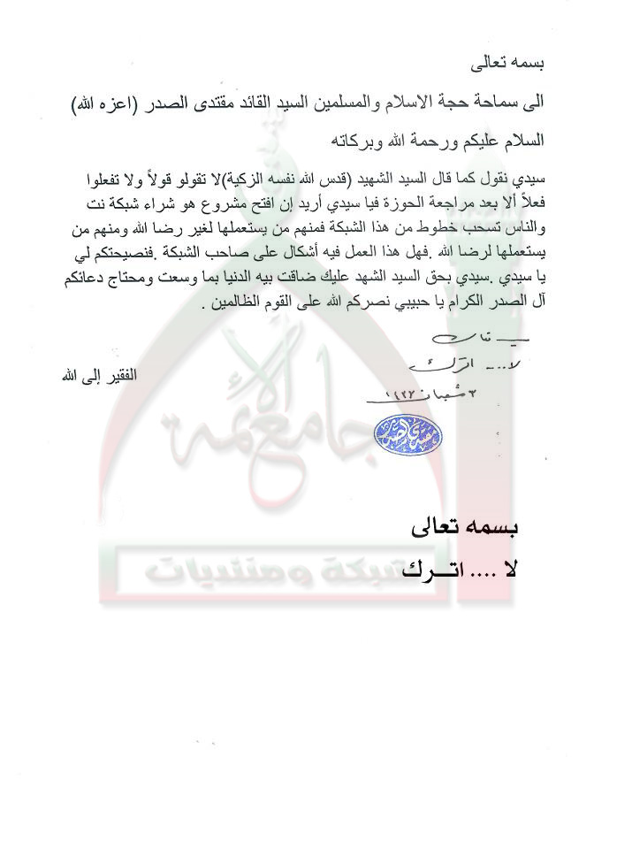 مشروع شراء شبكة انترنت استفتاء السيد مقتدى الصدر اعزه الله 25 - 6 - 2012