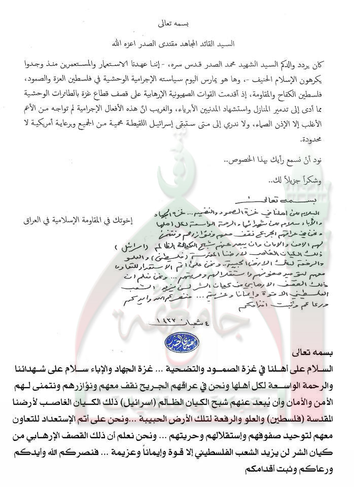 القصف الارهابي الوحشي الذي يتعرض له قطاع غزة استفتاء السيد مقتدى الصدر اعزه الله 26 - 6 - 2012