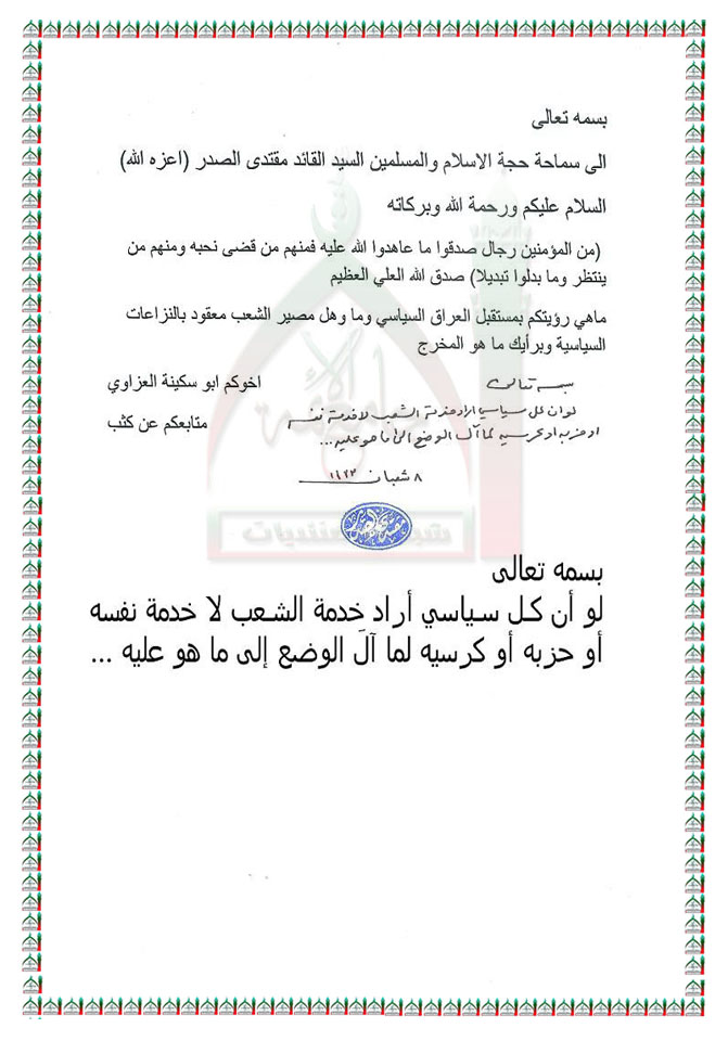 بيانات واستفتاءات السيد القائد مقتدى الصدر نصره الله