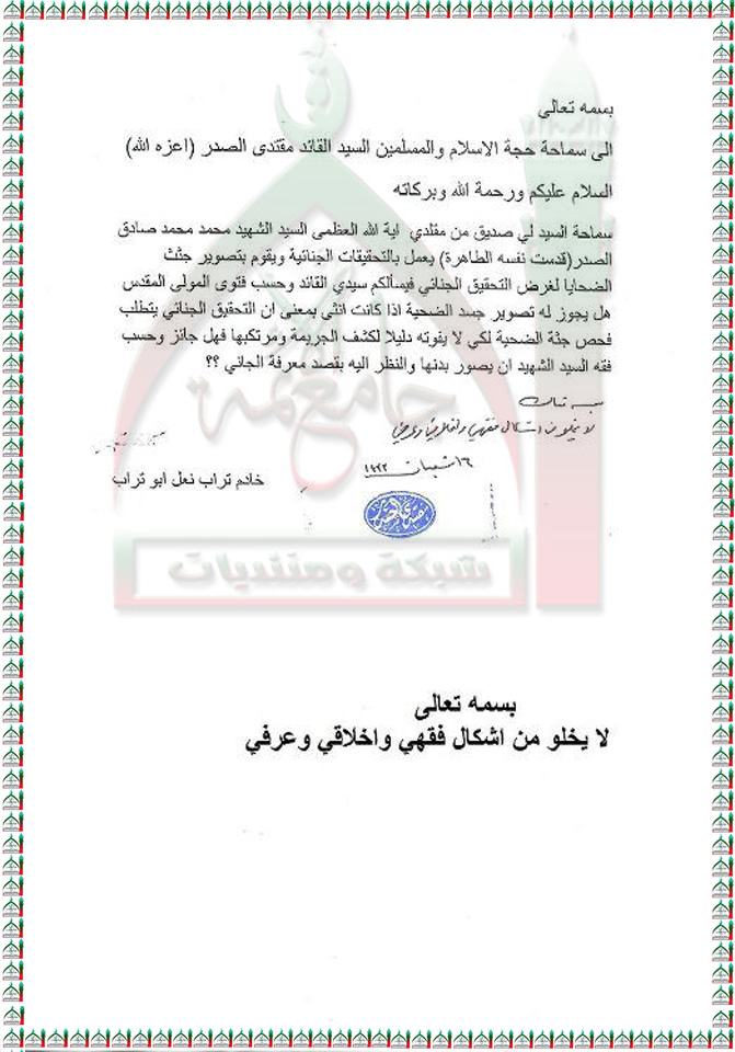شخص يعمل في التحقيقات الجنائية ويقوم بتصور جثث الموتى استفتاء السيد القائد مقتدى الصدر اعزه الله 8 - 7 - 2012