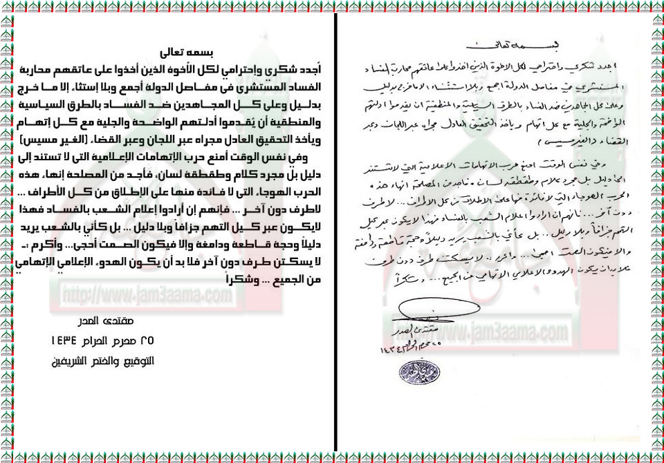 شكر كل من أخذ على عاتقه محاربة الفساد بيان السيد القائد مقتدى الصدر اعزه الله 8 - 12 - 2012
