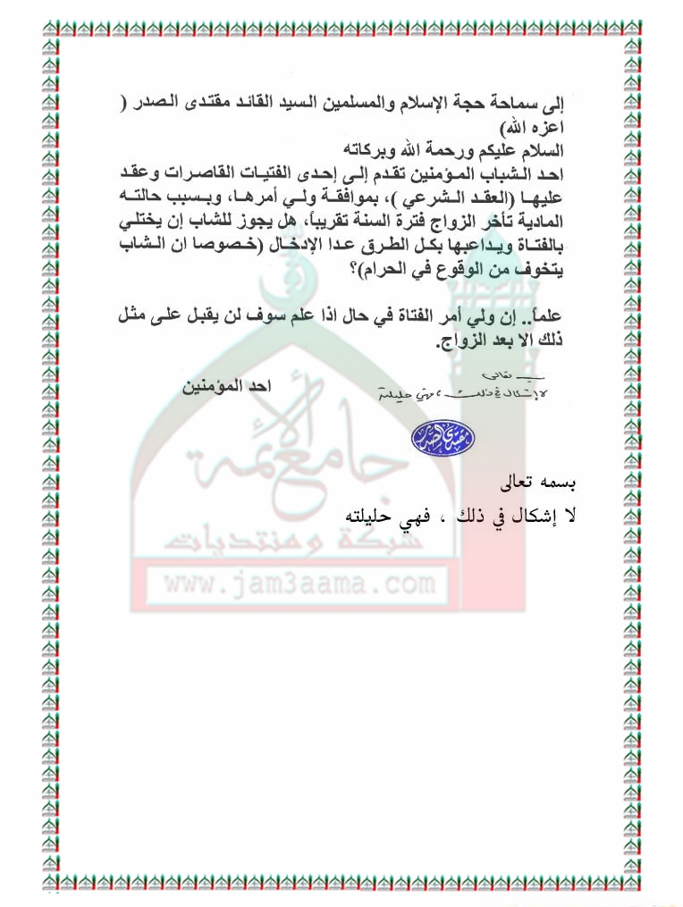 تاخير الزواج استفتاء سماحة السيد القائد مقتدى الصدر اعزه الله 1 - 11 - 2010