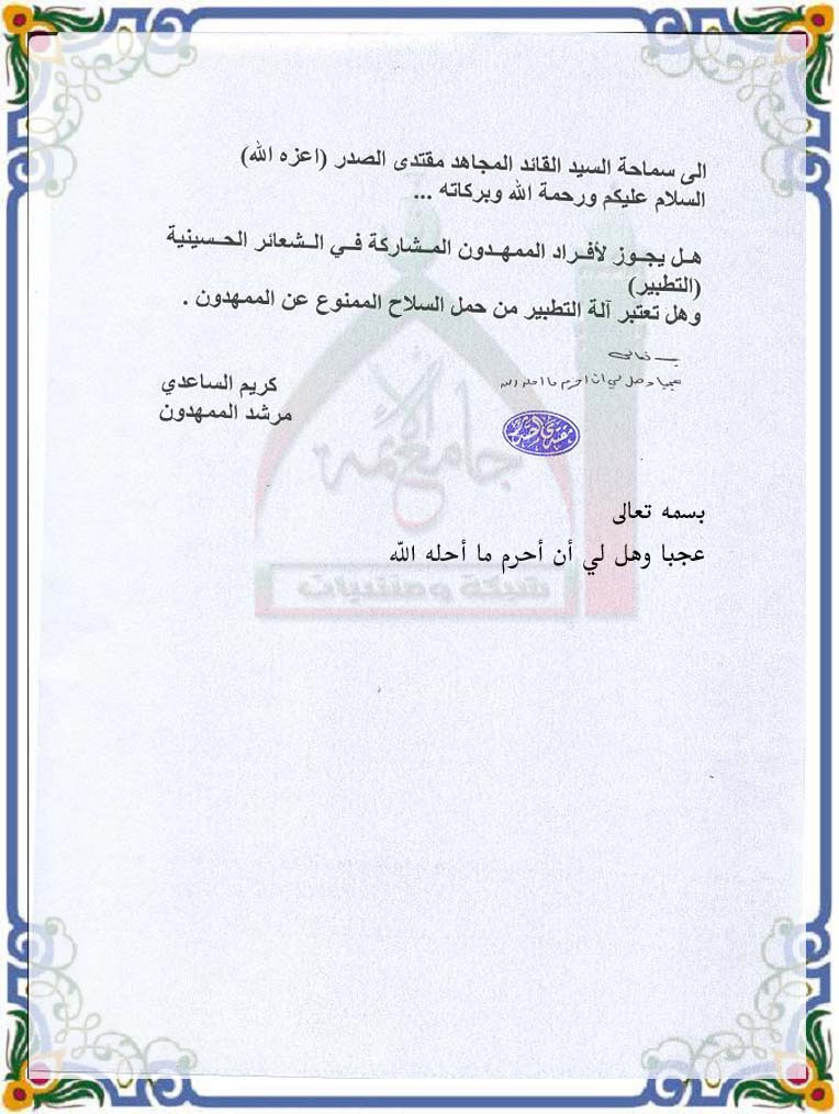 استفتاءان للسيد القائد حول المنشقين-التطبير-القروض-بيع المخدرات بتاريخ 3-11
