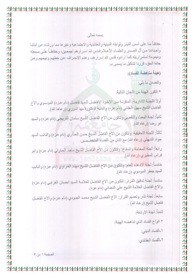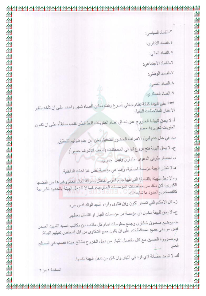 التخويل الرسمي لتشكيل هيئة مناهضة الفساد والصادر بقلم سماحة السيد القائد مقتدى الصدر اعزه الله 14 - 4 - 2013