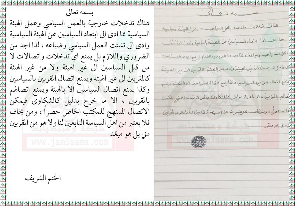 منع الاتصال من قبل السياسيين بغير الهيئة السياسية بيان السيد القائد مقتدى الصدر اعزه الله 11 - 5 - 2013